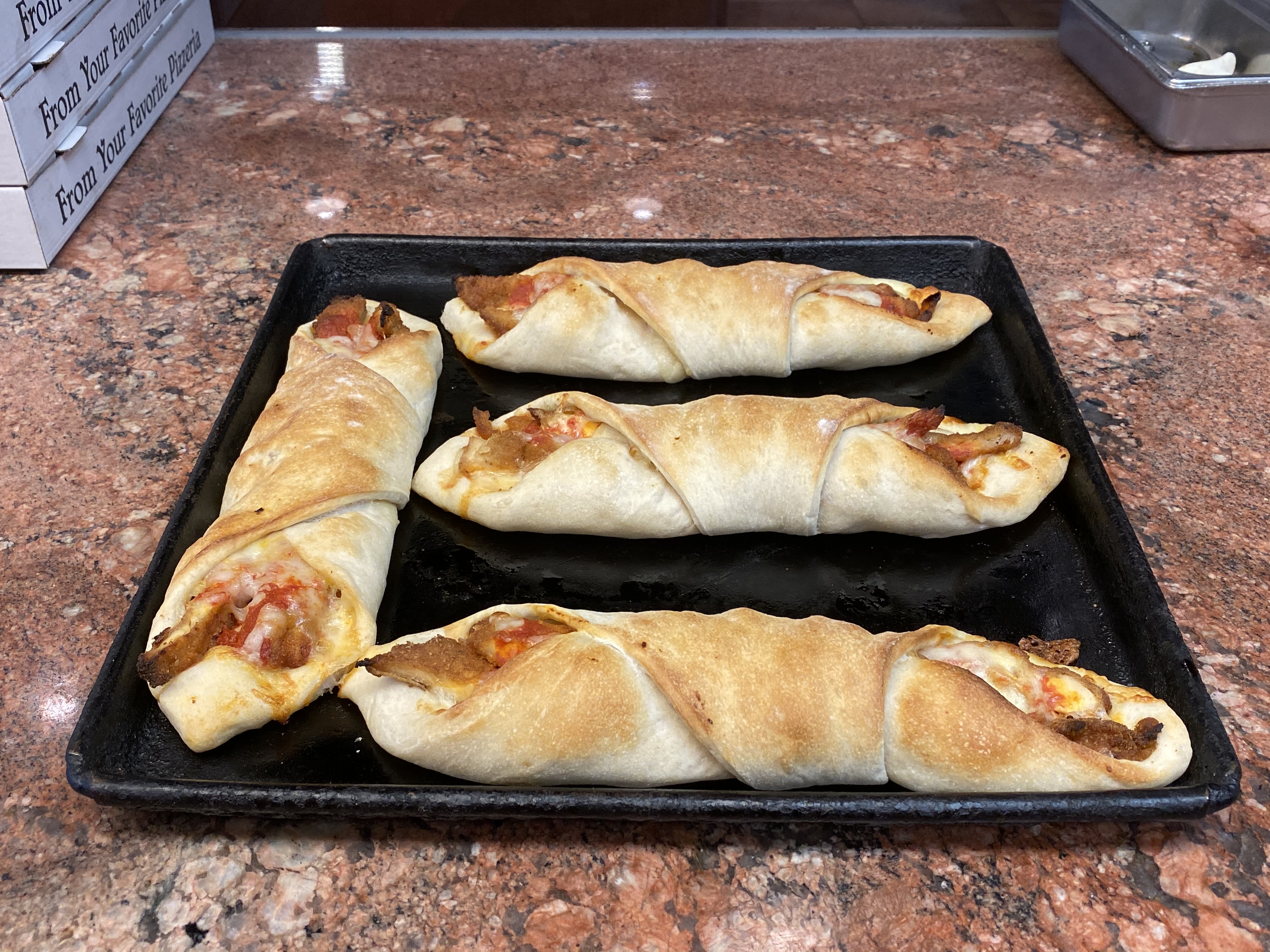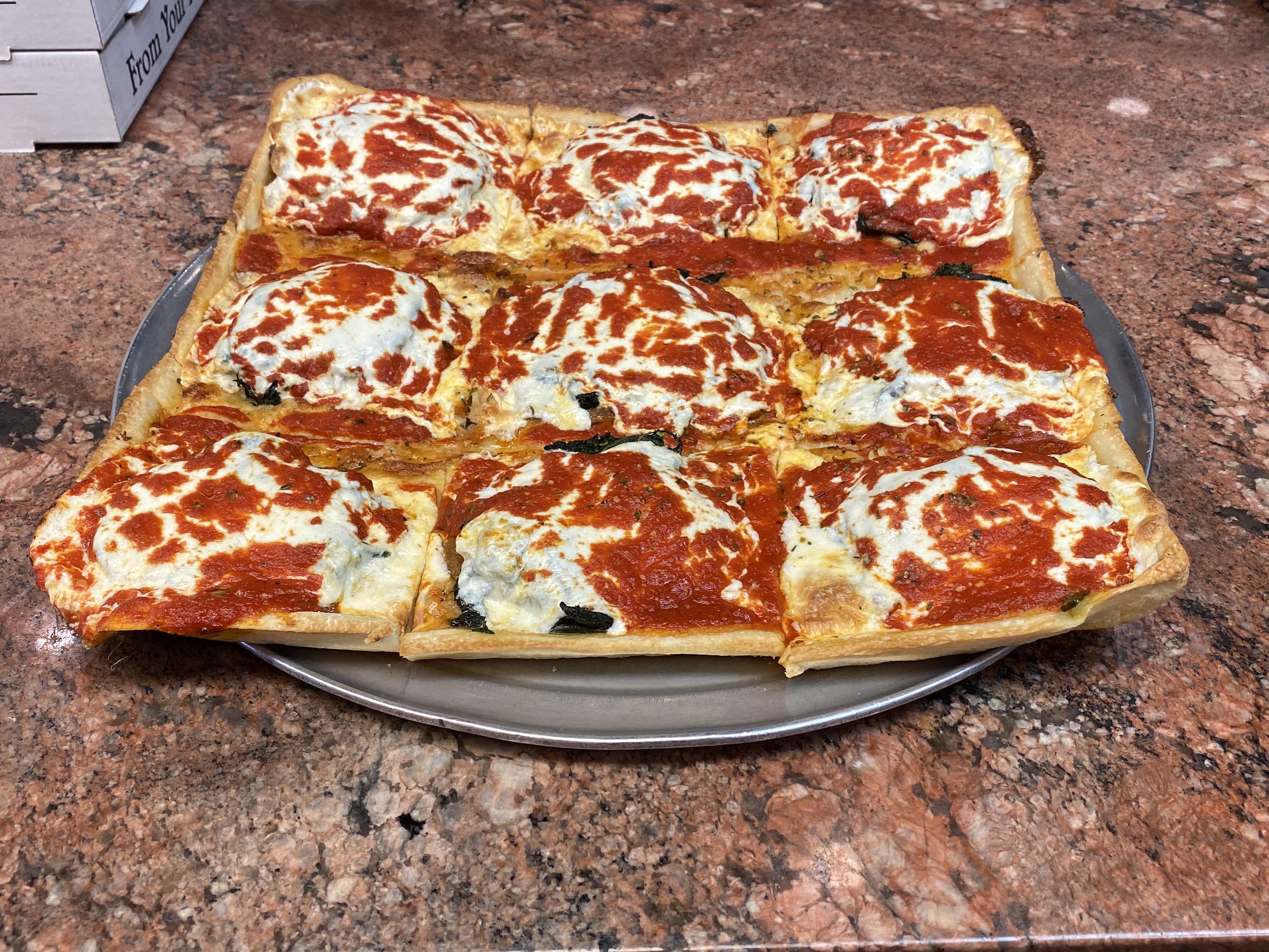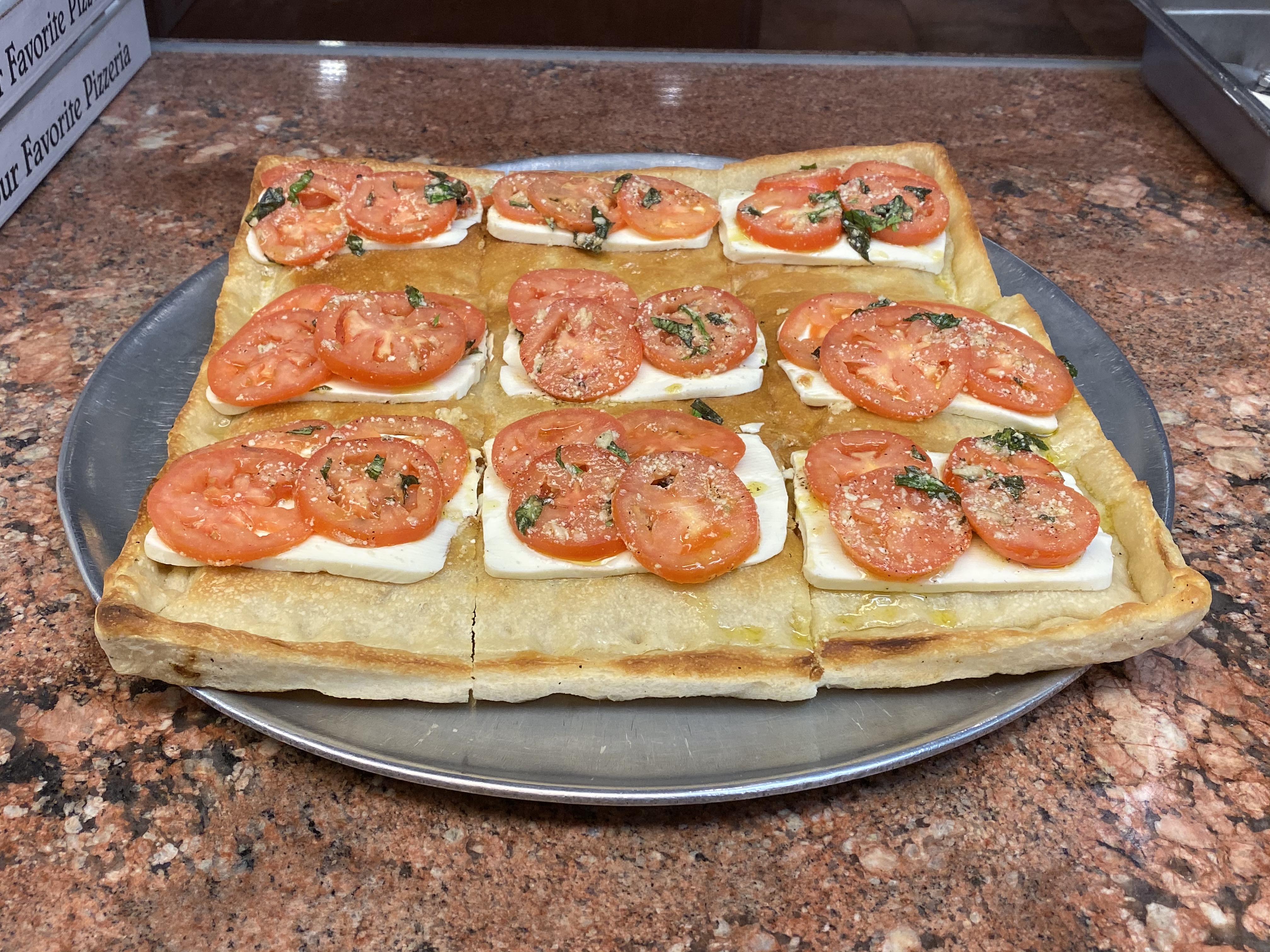 Sweet Homemade sausage and pepper with our homemade tomato sauce and mozzarella cheese