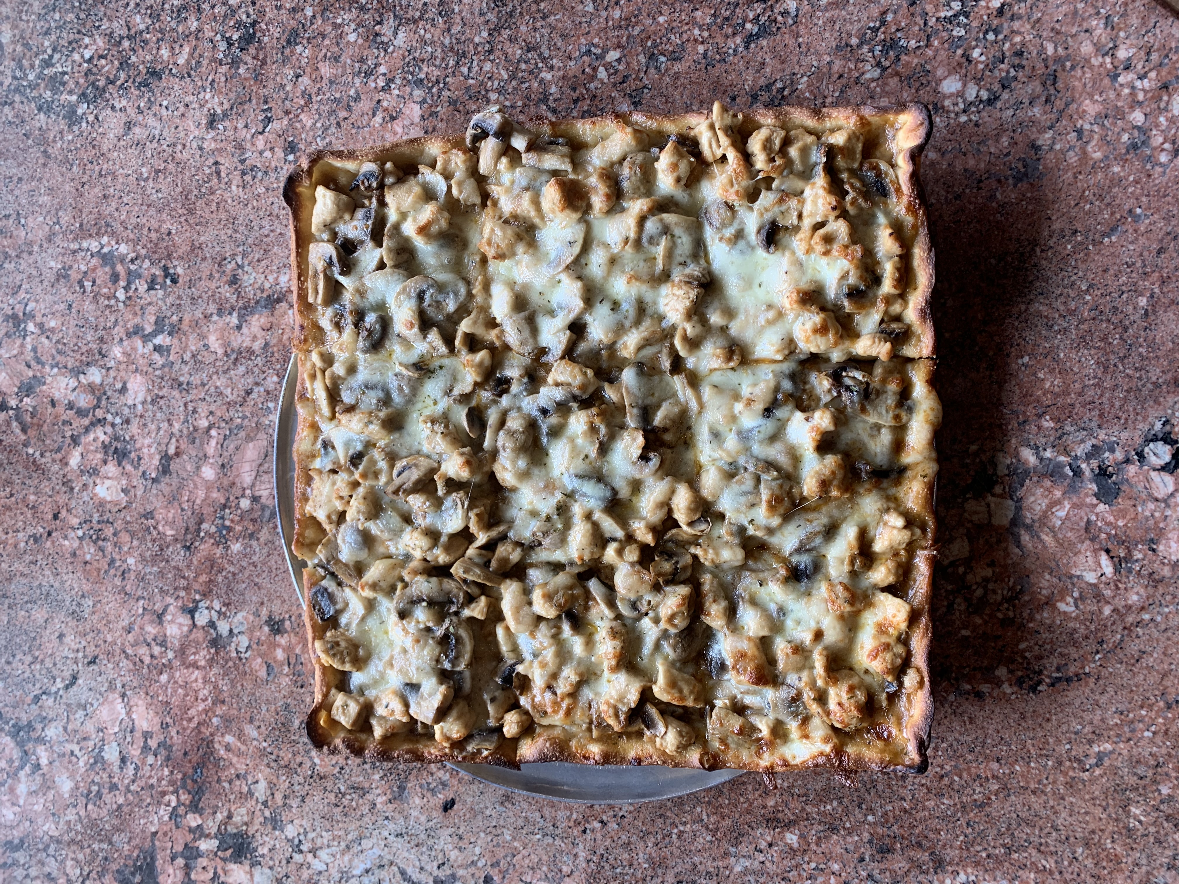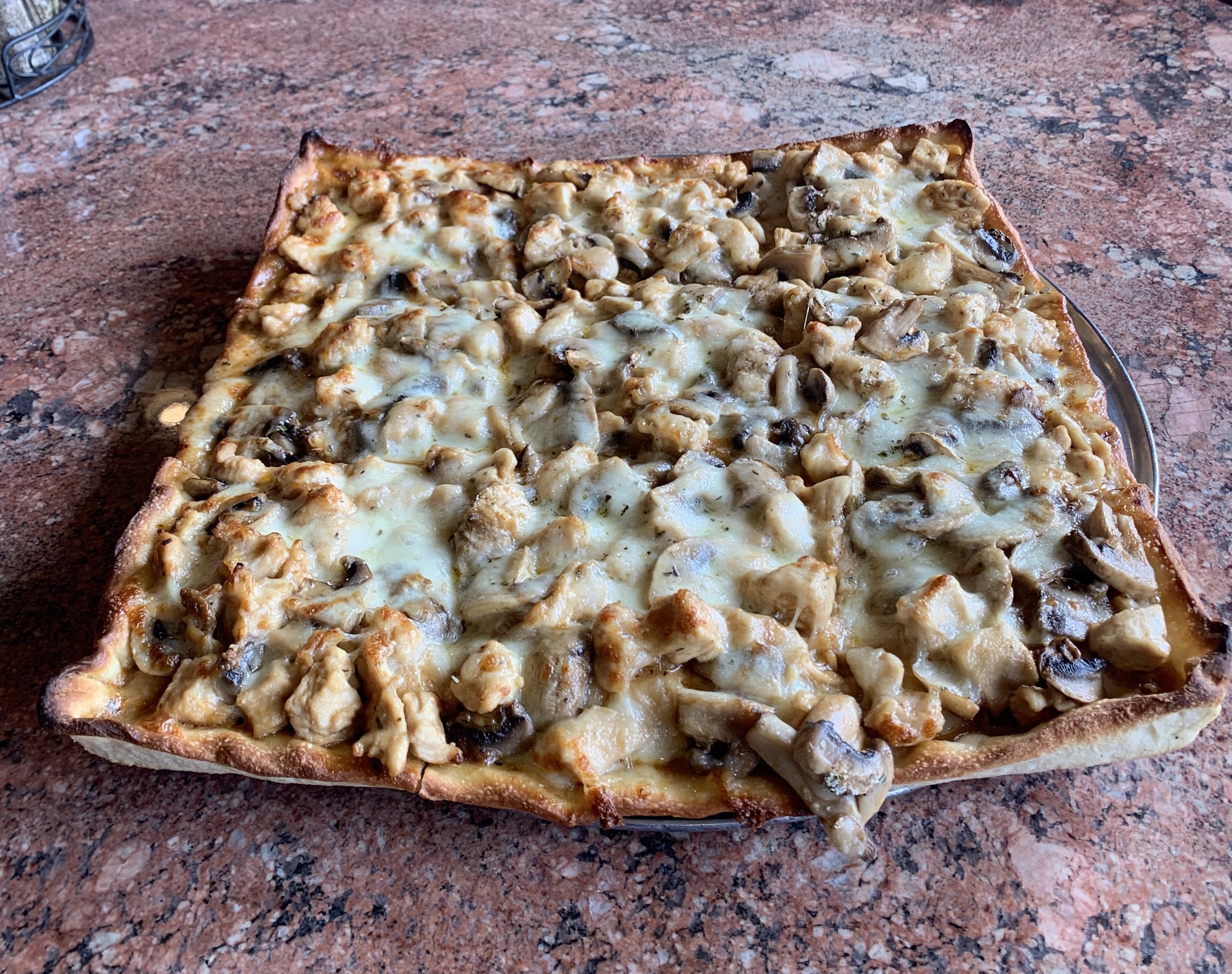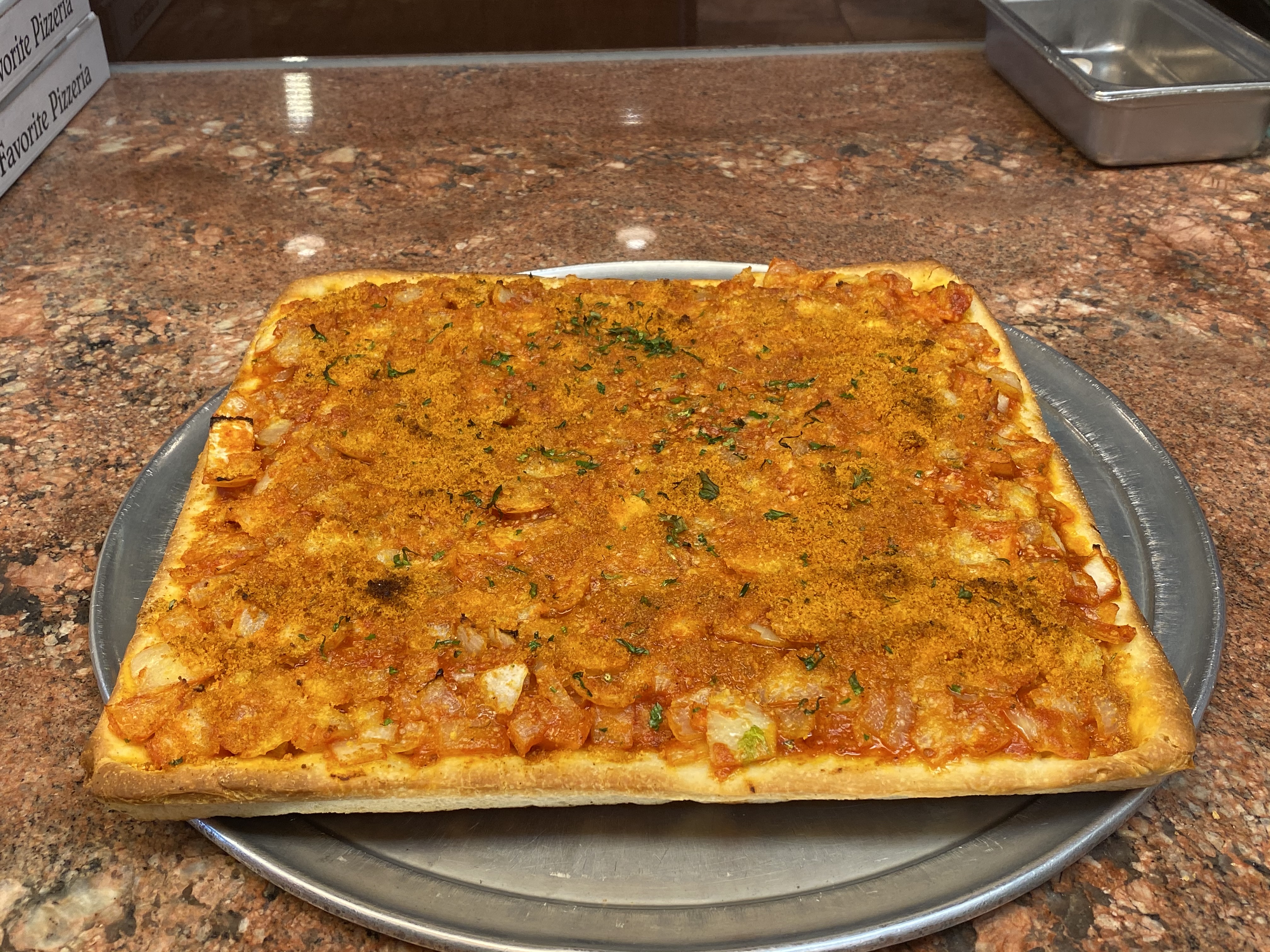 Sweet Homemade sausage and pepper with our homemade tomato sauce and mozzarella cheese